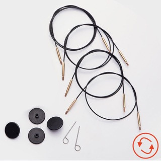 Ezüst színű csatlakozó végekkel rendelkező 80 cm hosszú 360 fokban körbeforgatható rozsdamentes acél kábel, bármely cserélhető KnitPro tűvéghez csatlakoztatható. A kábel a csatlakozásnál teljesen körbe tud fordulni, így munka közben a kábel soha nem csavarodik meg!